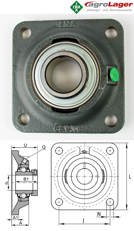INA-Vierloch-Flanschlager RCJY45-XL Ø 45mm