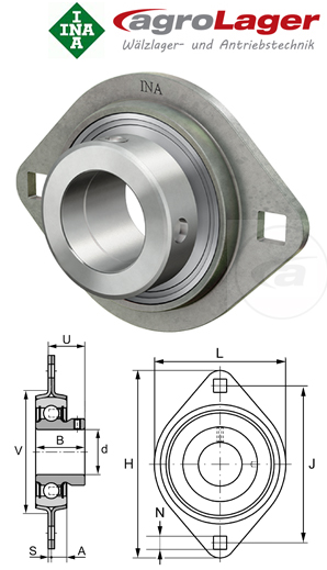 Zweiloch-Flanschlager-Gehäuseinheiten RAT, RATY und RALT des Herstellers INA
