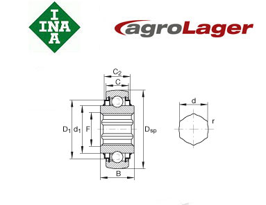 Spannlager, 6-kant 209-KRR-B2 38,1x85x30 - balliger Aussenring