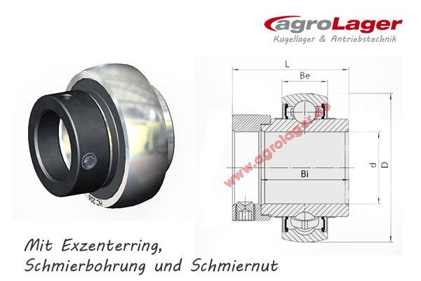 Spannlager HC... mit beidseitg verlängerem Innenring plus einem Exzenterring für Befestigung auf der Welle.