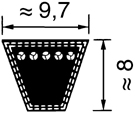 Angegebene Längen(Lw) = Wirkungslänge des Keilriemens.