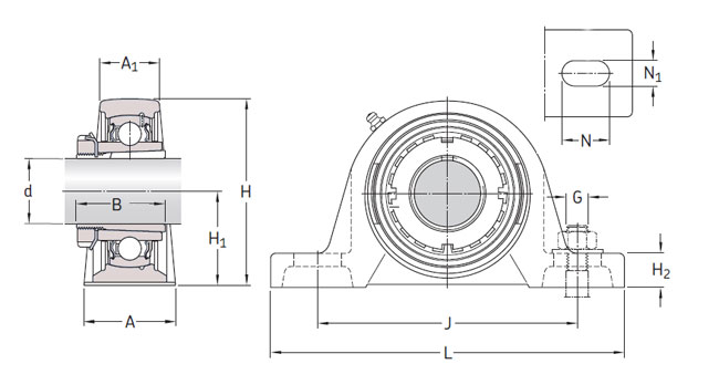 | SYJ..KF | SKF-Stehlagereinheit mit langem Fuß, JIS - Japanische Norm, Innenring konisch, zur Befestigung wird eine Spannhülse benötigt, nachschmierbar |