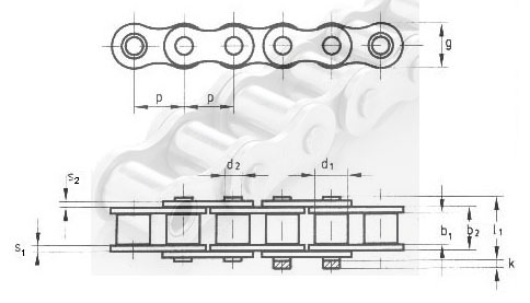 | - | | Teilung p | 6 mm | Lichte Weite b1 | 2,8 mm | Rollen Ø d1 | 4 mm | Bolzen Ø d2 | 1,85 mm | Bolzenlänge b4 | 6,8 mm | Innengliedbreite b2 | 4,15 mm | Laschendicke S1/S2 | 0,60/0,60 mm | Laschenhöhe g | 5 mm | |