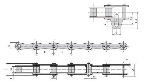 Landmaschinen-Rollenkette mit Laschen auf einer Seite S42 E2P K1x1 - 34,93x19,05 - VE: 5 Meter
