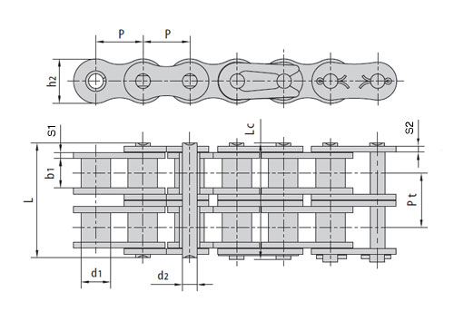 Duplex Rollenkette 60-2 - 3/4x1/2 DIN 8188 Zweifach - VE: 5 Meter - Amerikanische Bauart